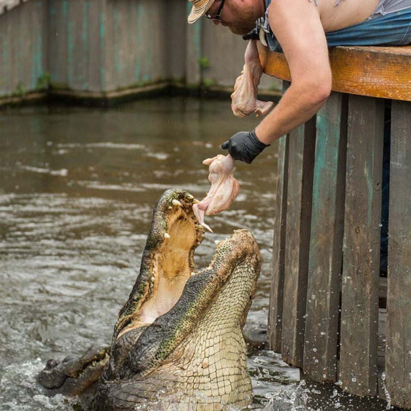 Home to hundreds of alligators, you’ll have the opportunity to safely venture within a few feet of hungry, giant alligators and create a thrilling feeding frenzy. Then pose for the cameras in front of your dinner companions, and be glad you weren’t dinner.
