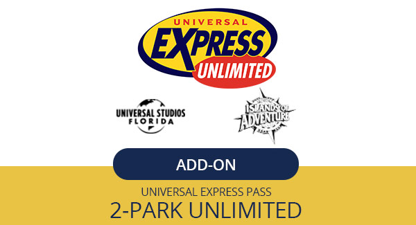 The 2-Park Universal Express Unlimited Pass entitles one (1) guest unlimited express ride access at participating rides and attractions within Universal Studios Florida AND Universal’s Islands of Adventure.